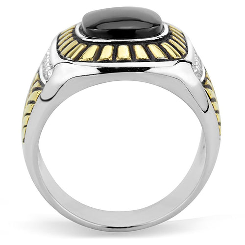 MT4923 Two-Tone IP Gold (Ion Plating) Stainless Steel Ring with Synthetic Onyx in Jet Men Ring